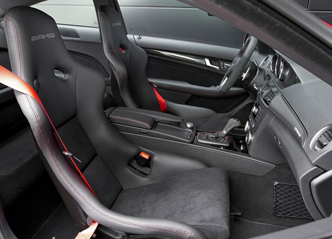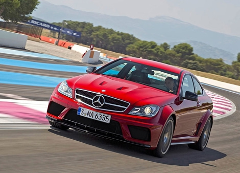 Компания Mercedes-Benz официально представила самую мощную модификацию купе С63 AMG, которая получила традиционное название Black Series. Мировая премьера автомобиля состоялась в рамках очередного Гран-при Формулы-1, которое прошло в Германии на трассе Нюрбургринг в воскресенье, 24 июля. Новинка получила расширенную на 40 миллиметров переднюю и на 75 миллиметров заднюю колею, более толстые стабилизаторы поперечной устойчивости и спортивную подвеску с несколькими вариантами настройки. Также купе оснащено самоблокирующимся задним дифференциалом, системой стабилизации с тремя режимами работы и шестипоршневыми тормозными механизмами с 390-миллиметровыми дисками на передней оси и четырехпоршневыми с 360-миллиметровыми дисками на задней. Под капотом самого мощного купе Mercedes-Benz C-Class установлен 6,2-литровый восьмицилиндровый двигатель, развивающий 571 лошадиную силу и 620 Нм крутящего момента. Мотор работает в паре с семиступенчатой автоматической трансмиссией Speedshift MCT со сцеплением вместо гидротрансформатора, которая в спортивном и ручном режимах способна менять передачи всего за 100 миллисекунд. С нуля до ста километров в час C63 AMG Black Series с такой силовой установкой сможет ускоряться за 4,2 секунды. Максимальная скорость автомобиля пока не уточняется. Для новинки будет предлагаться два пакета опций, названными AMG Track package и AMG Aerodynamics package. Первый из них включает в себя установку покрышек Dunlop (размерности 255/35 R 19 спереди и 285/30 R 19 сзади), которые были специально разработаны для модификации Black Series, а также улучшенную систему охлаждения дифференциала на задней оси. Во второй пакет входят дополнительные карбоновые аэродинамические элементы обвеса кузова, включая новый регулируемый задний спойлер. По словам представителей компании AMG, эти элементы существенно увеличивают прижимную силу на передней и задней оси. Отметим, что в базовой комплектации купе будет предлагаться в двухместном варианте. Задние сиденья для этого автомобиля планируется предлагать только за доплату. В продажу на европейском рынке купе Мercedes-Benz С63 AMG Black Series поступит только в следующем году. Цены на машину, как ожидается, будут начинаться от 115 тысяч 430 евро.